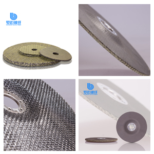• “羅邊玻璃纖維增強(qiáng)砂輪網(wǎng)片 是采用玻璃纖維增強(qiáng)網(wǎng)布涂以酚醛、環(huán)氧改性樹脂,經(jīng)烘培后沖切而成,裁切采用外徑、內(nèi)孔一次沖切成形工藝。因此,網(wǎng)片具有尺寸公差小,同心度好,周邊光潔等優(yōu)點(diǎn)。該產(chǎn)品主要為不織布復(fù)合網(wǎng)片、黒紙復(fù)合網(wǎng)片和純網(wǎng)片,具有極好的耐熱性、高速切割性能及高結(jié)構(gòu)強(qiáng)度。“